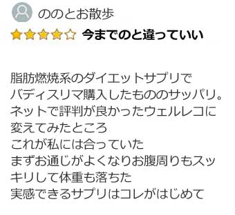 「はじめはバディスリマを飲んでいたけれど、ウェルレコに切り替えた」という口コミもいくつかありました。