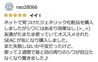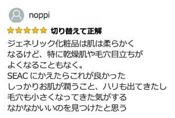 「はじめはジェネリック化粧品を使ったけれど、SEAC(シーク)に切り替えた」という口コミもいくつかありました。