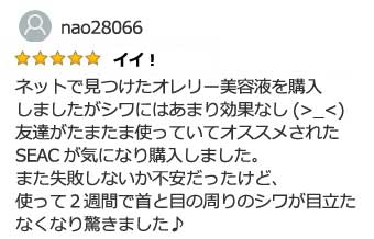 「はじめはオレリーを使ったけれど、SEACに切り替えた」という口コミもいくつかありました。